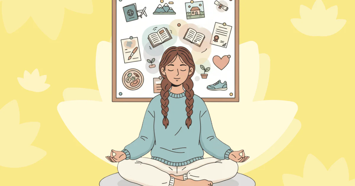 Поэтому карта желаний не детская забава и не магический плакат. Это способ вернуть себе право хотеть, увидеть, что именно вам важно, и аккуратно дать этому место в жизни. А чтобы карта не превратилась в красивую картинку на стене, к ней хорошо подходят медитации с визуализацией. Короткие практики помогают регулярно возвращаться к выбранным образам, чувствовать их телом, успокаивать тревогу и не забывать о себе посреди суеты. Как именно этот тандем «карта плюс медитации» поддерживает психику и поведение, разберём в следующем разделе.